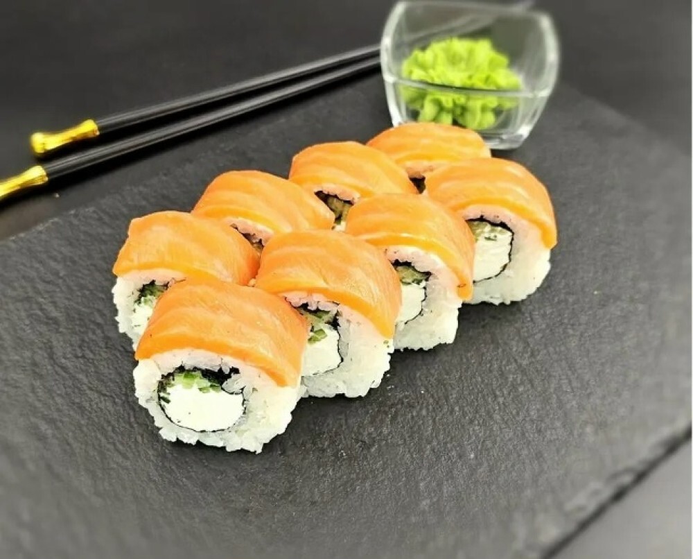 Рис, нори, сыр креметте, филе лосося, свежий огурец