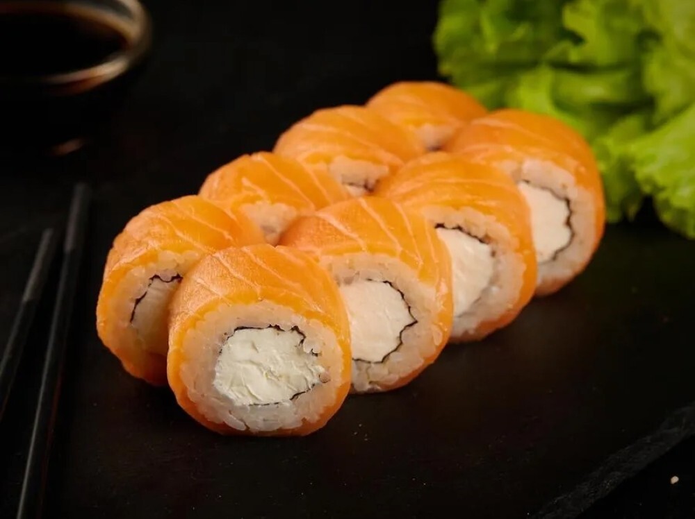 Филадельфия с тигровой креветкой под соусом манго-чили