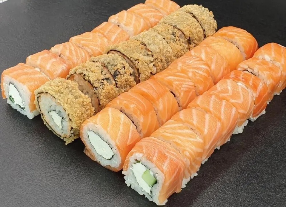 Филадельфия классическая (8 шт.), Филадельфия с огурцом (8 шт.), Филадельфия с луком (8 шт.), Филадельфия темпура (8 шт.)