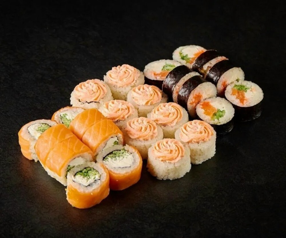 Филадельфия с огурцом (8 шт.), Лава с лососем (8 шт.), Самурай (8 шт.)